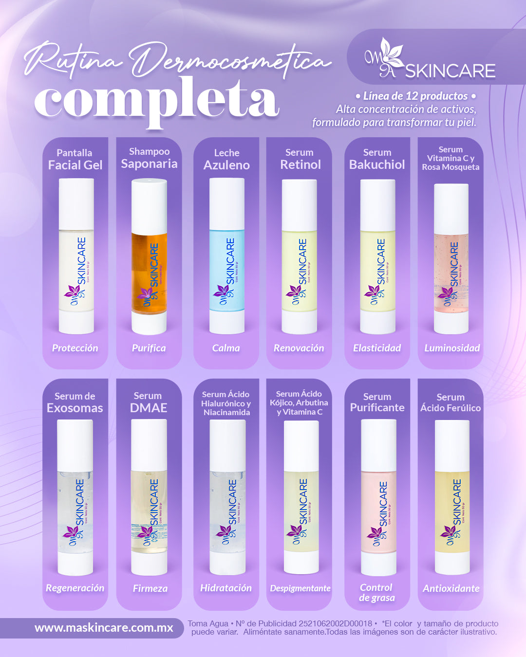 .En MA SKINCARE creemos en el poder de una rutinacompleta, diseñada para cuidar, proteger y potenciar tupiel todos los días.Limpia, trata, hidrata y protege con productosformulados para acompañarte en cada pasoConoce nuestra línea y transforma tu cuidado facialdesde casa.